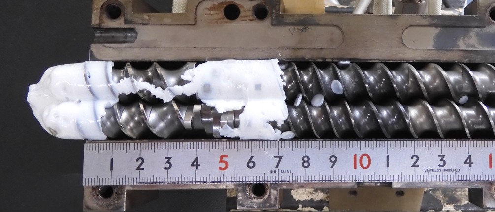 In addition, the Q/N index was adjusted by changing extrusion conditions such as screw rotation speed and throughput using the same equipment, and the resulting effects on the filling behavior were visually observed. By using a special vertically split barrel design, it was possible to visualize the filling condition of the screws during extrusion operation with high reproducibility, compared with conventional methods that rely on confirming the filling state by pulling out the screws after operation.