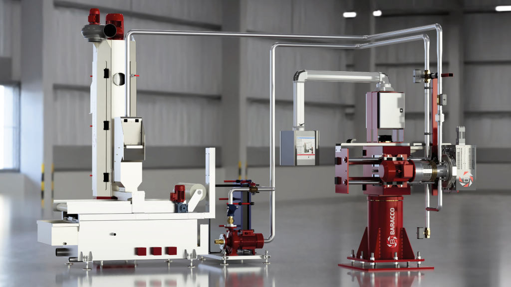 BPUシリーズは、Baraccoが提供する生産機向けのアンダーウォーターペレタイジングシステムであり、押出機やギアポンプと連動し、溶融樹脂を連続的に高品質ペレットへと変換する統合装置です。クローズドループの水循環システム内でカット・冷却・搬送・乾燥までを一貫して行い、500~5,000 kg/hクラスの幅広い処理能力に対応します。コンパウンド、マスターバッチ、バージン材、リサイクル材など多様な用途に適用可能で、生産現場における高い汎用性を備えています。